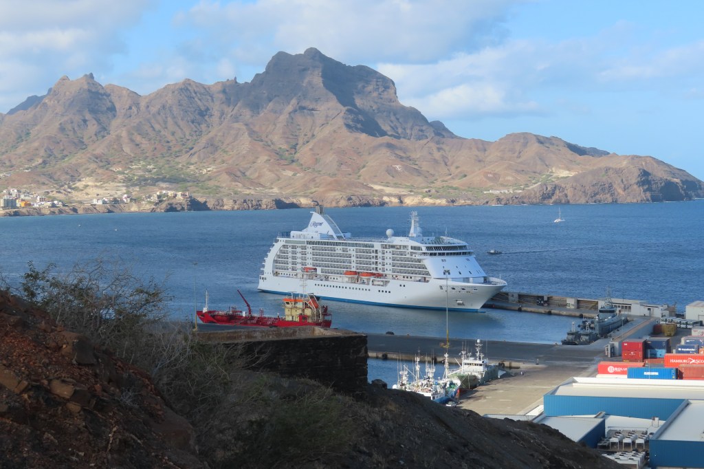 We were in port for a day visiting Mindelo – the Cultural Capital. It was a Sunday so much quieter than a weekday but quite pleasant and a wonderful guide and tour. We started with a birds eye view of the city from what used to be a fortress and then a prison. The road was dusty and pot holed and not maintained but the view was great…when I’m lived in Kenya, during Peace Corps, we had a saying “TIA” which meant “this is Africa”. I have started using it again, regularly, now that I am back in Africa. Some things don’t seem to change and it is notable that many of the places we visit and that I have visited over the years in various countries, would never allow tourists, if in the USA, for safety reasons.