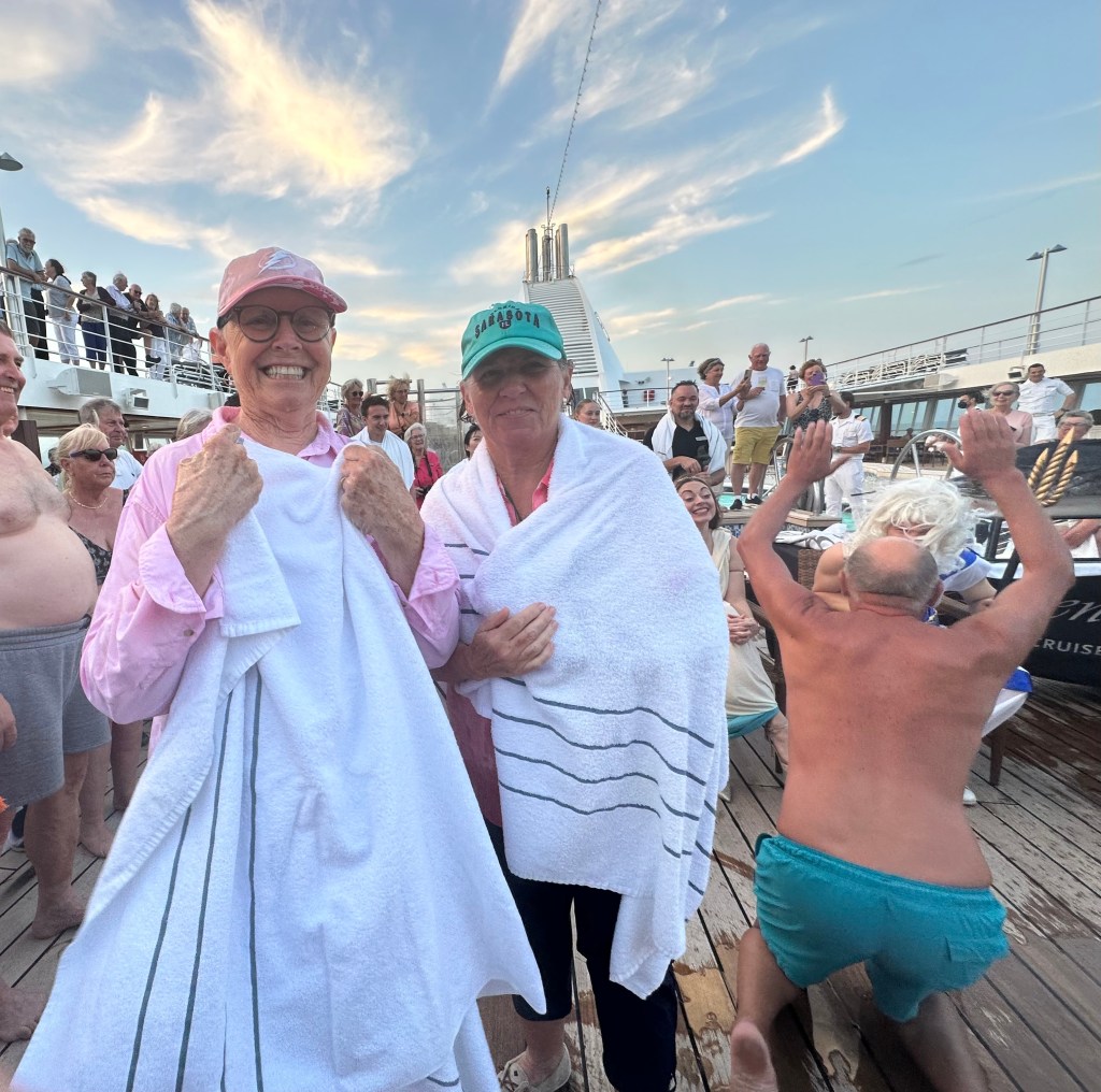 After leaving São Tomé and Príncipe, at 1’N and 7’E, we crossed the equator on water. This country is about as close to the center of the world as it gets, and I will share the visit soon. In the meantime, I have lived just south of the equator in Kenya and crossed it many times on land. We crossed it in the Galapagos in 2022, but nothing was said. Bob talked about crossing it when he was in the Navy years ago – there is a maritime ceremony for those crossing it for the first time on water, and Regent made a big deal of it yesterday for those of us who were Pollywogs and became officially a Shellback!