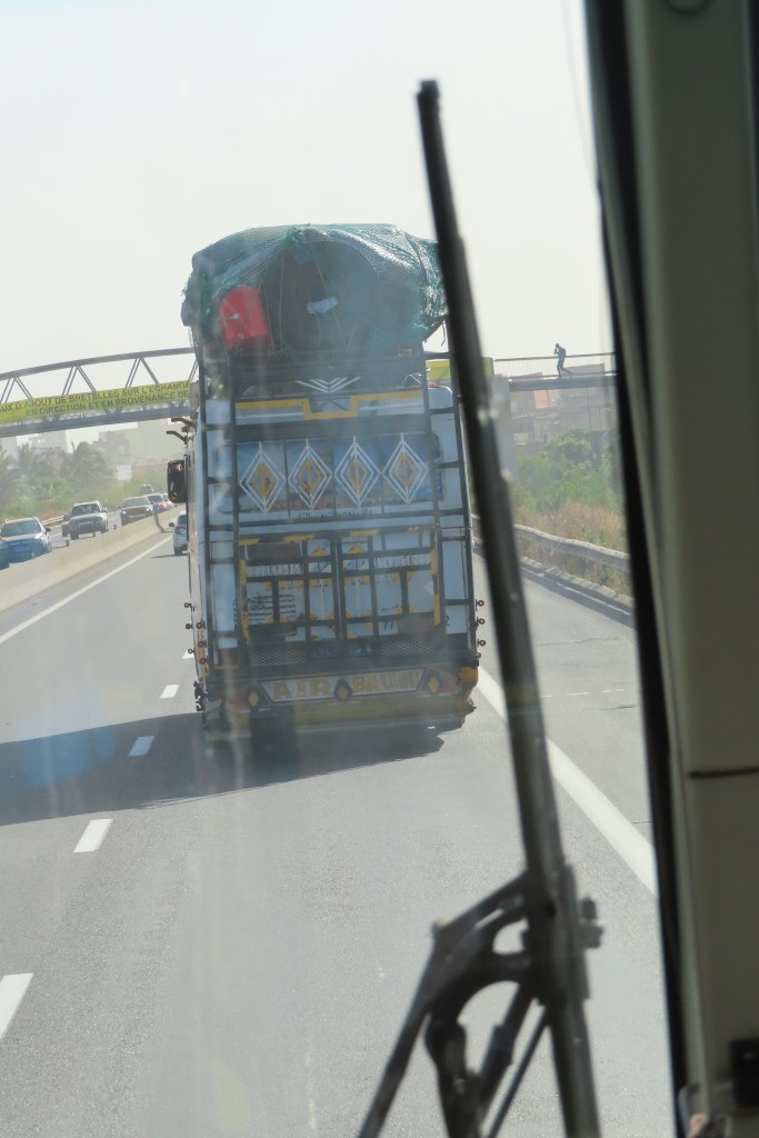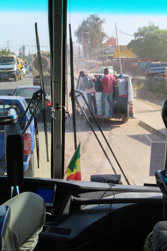 Once the festival ended we climbed back on the bus and drove to the port through the city of Dakar. There are many levels of development and wealth in the city. And lots and lots of traffic. It was a long slow drive offering many views of everyday life, a beautiful coast line and a bit of a frenetic city. Offering a few random photos – mostly from the bus window, it’s fascinating to watch as we drive…