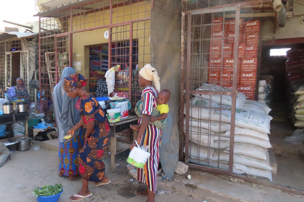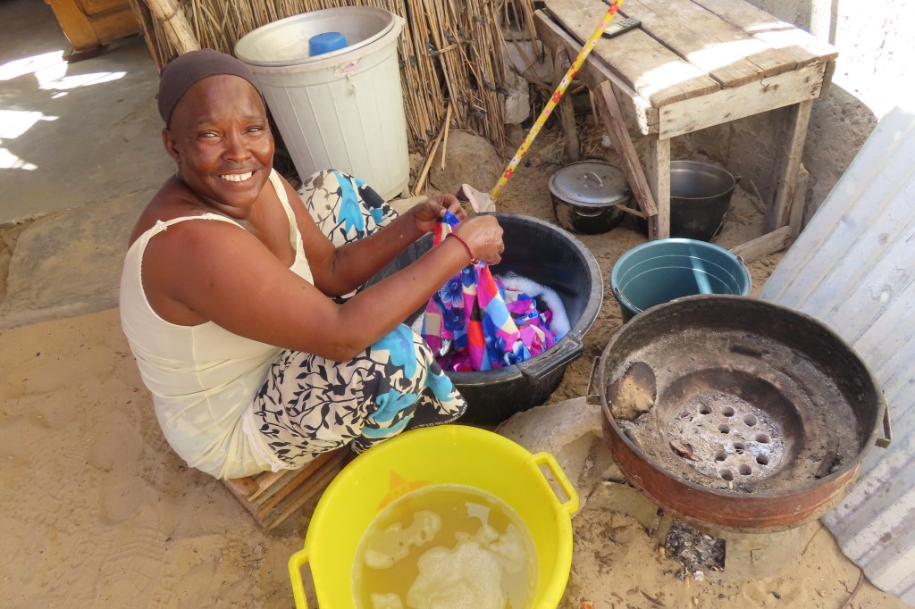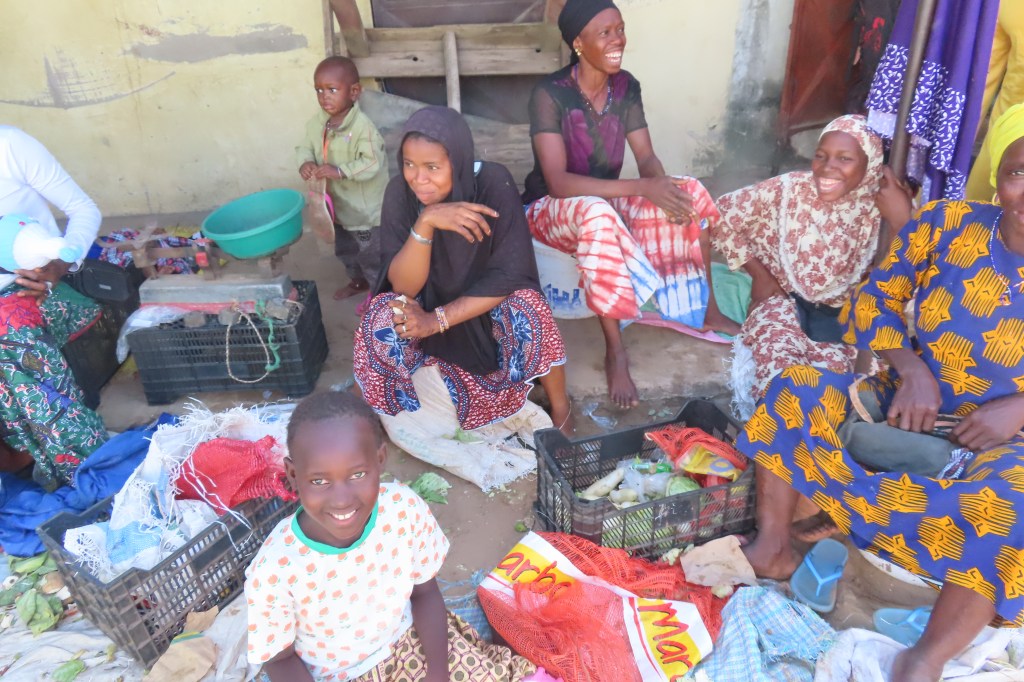 That morning we also visited a Fulani village. This tribe is a nomad tribe and has moved it self from east Africa all over the western coast of Africa. At one point coming from the Masai. More recently, the borders of the west African countries have been more controlled so the nomadic activities has have been curtailed for a large amount and they are now required to cultivate and grow their own food. The village we visited was very basic, nice people. Met the “chief”…he had three wives and 14 children. There was a school there and a lot of goats. We learned how to grind millet, and one of the women was working next to a jiko as well as washing clothes…so many memories of Kenya and Peace Corps.