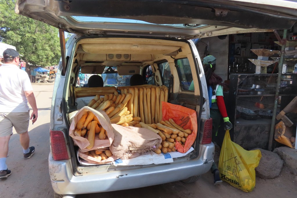 We docked in Dakar on a Tuesday, a very crowded, noisy city, full of all types of transportation, i.e. cars, scooters, bikes, buses, trucks and pedestrians. Throughout the city and countryside there are thousands of unfinished buildings. The citizens who want to build a house anywhere in the country can borrow/pay the equivalent for about $1500 and have two years to complete the building. Sadly most of them never get to complete the homes and lose the property and whatever progress they have made. It is a huge scar/footprint everywhere you look in the country. Our guide made a comment if we wanted to buy a 150 sq ft brick skeleton apartment in the city – there were plenty available. That’s the normal size in the city and in suburbs and country side, a bit bigger. For perspective, the average income is about $250 a month…