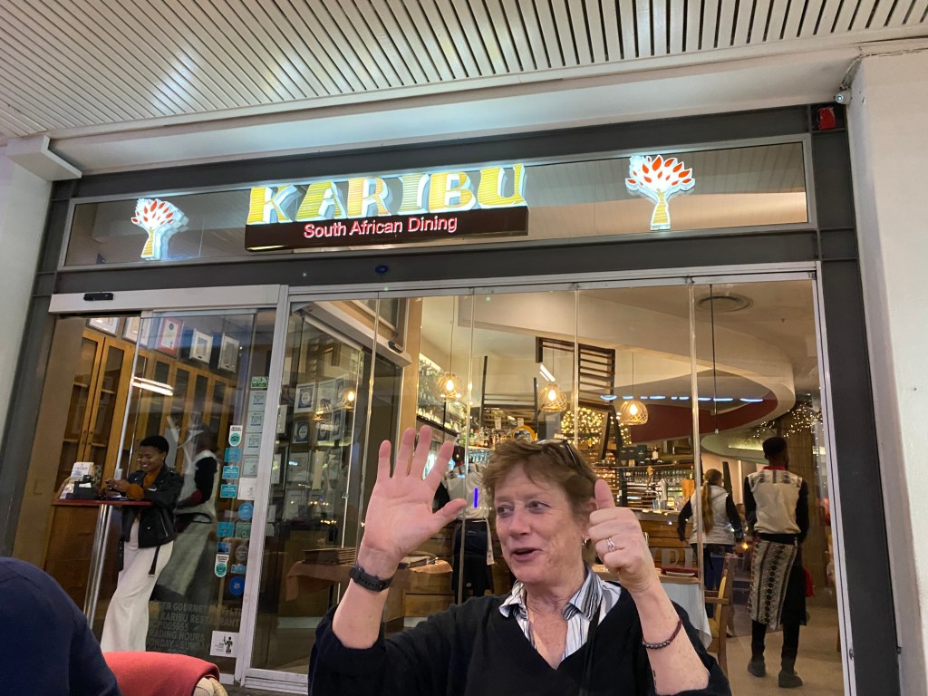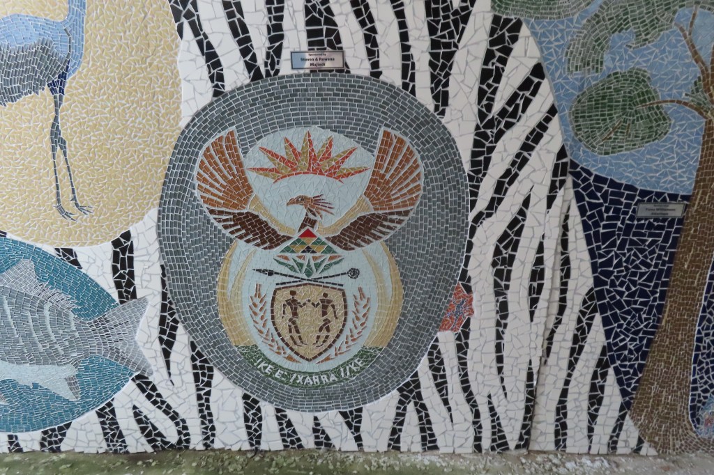 The next day we arrived in Mossel Bay by ship, another area as we travel up the Indian Ocean and eastern side of South Africa. A lovely town on the coast… there were several unique excursions. We visited an amazing Mosaic Tunnel and a local (stunningly set) golf club…There was also a hike but I simply took in the vistas. This afternoon we continue up the coast and will have our first game drive tomorrow.