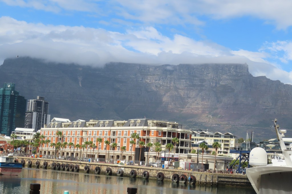 Tuesday we had a tour to Hermanus and an abalone farm…as well as a lot of long delays with traffic. And sadly, no time to wander Hermanus which is what I’d hoped for. On the boat and more info/dinner/greeting fellow passengers and getting acclimated. Wednesday morning, I took off while Melinda when to the botanical gardens. I’ve been and appreciated some down time. About 3:00 the ship NG Explorer set sail and we said good-bye to Cape Town… what a view of Signal Hill and Table Top Mountain. It was choppy, windy and a bit of a wild ride but meds were had and we all survived.