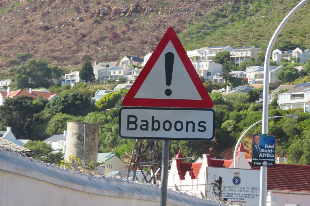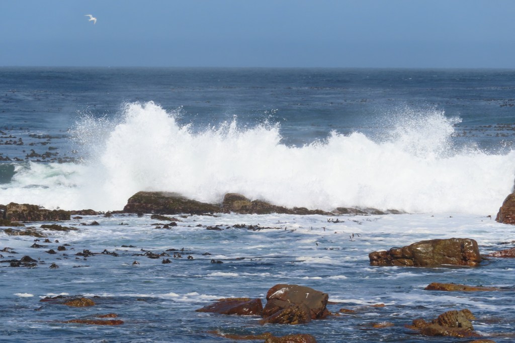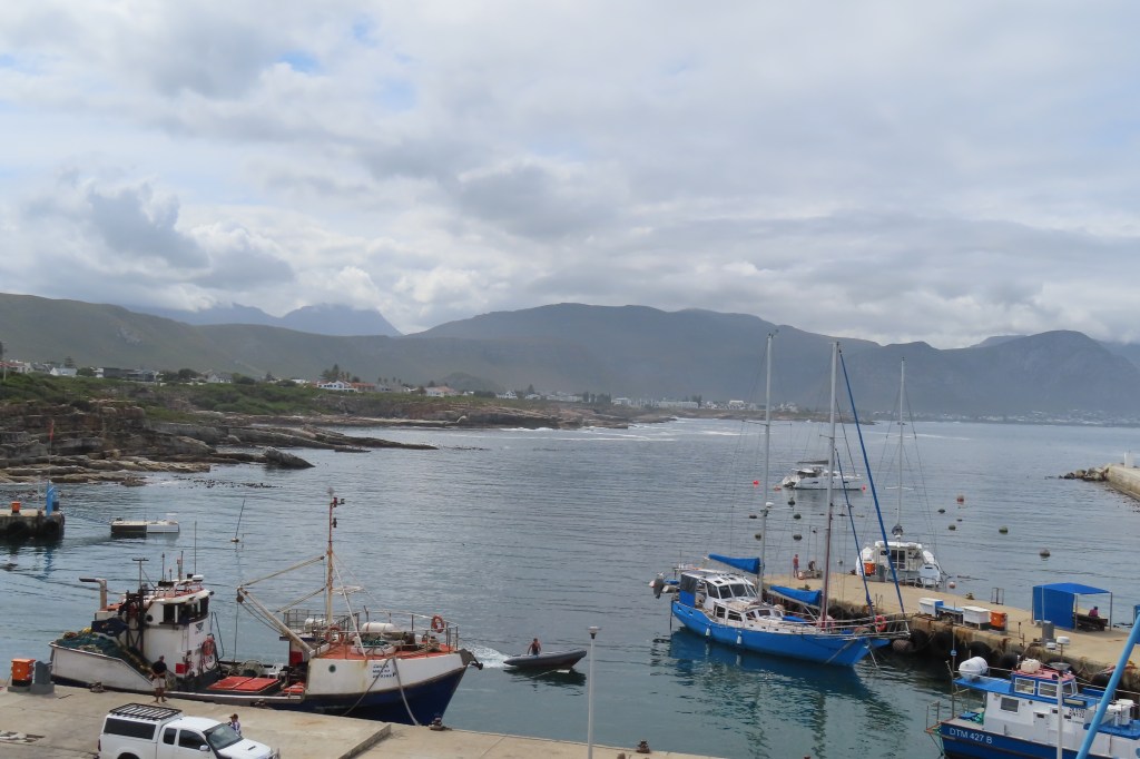 Hermanus… by road. We were to start out trip up the coast on boat but due to heavy seas and very heavy winds, we took the road. Interestingly, there was a large cruise ship in port that has been stuck there for several days due to the wind. It just could not get out of the port as it was too high.