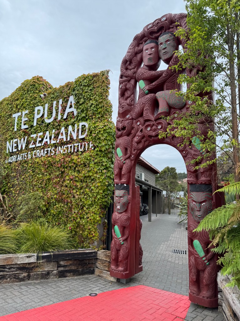 From here we visited the Te Puia Arts and Crafts Institute where young Maori apprentices learn ancient art of carving and weaving. We also enjoyed a traditional Maori dance and had an amazing lunch “hangi” earth oven style. We enjoyed our lunch with new friends, Elizabeth and Marty.