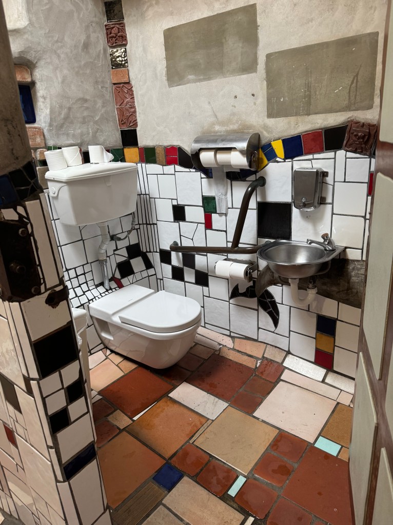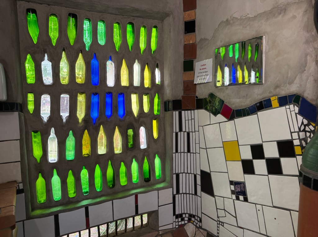 We also visited a fun little town – Kawakawa. It has a tourist street car down the middle of the road on tracks and the most creative bathrooms… designed by the Austrian artist…