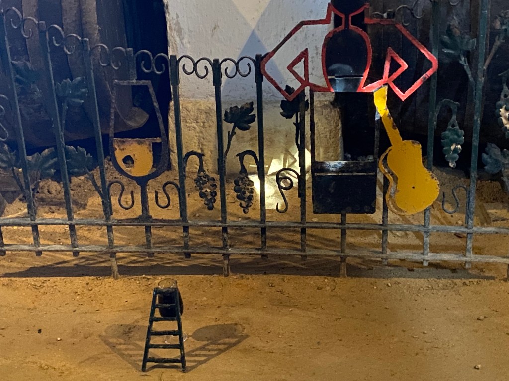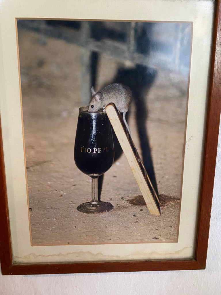 Apparently having mice in your winery keeps rats (who would eat the barrels) away…the el guardian of the barrels put down this dear little setting for the mice and would watch at night periodically capturing one sipping!