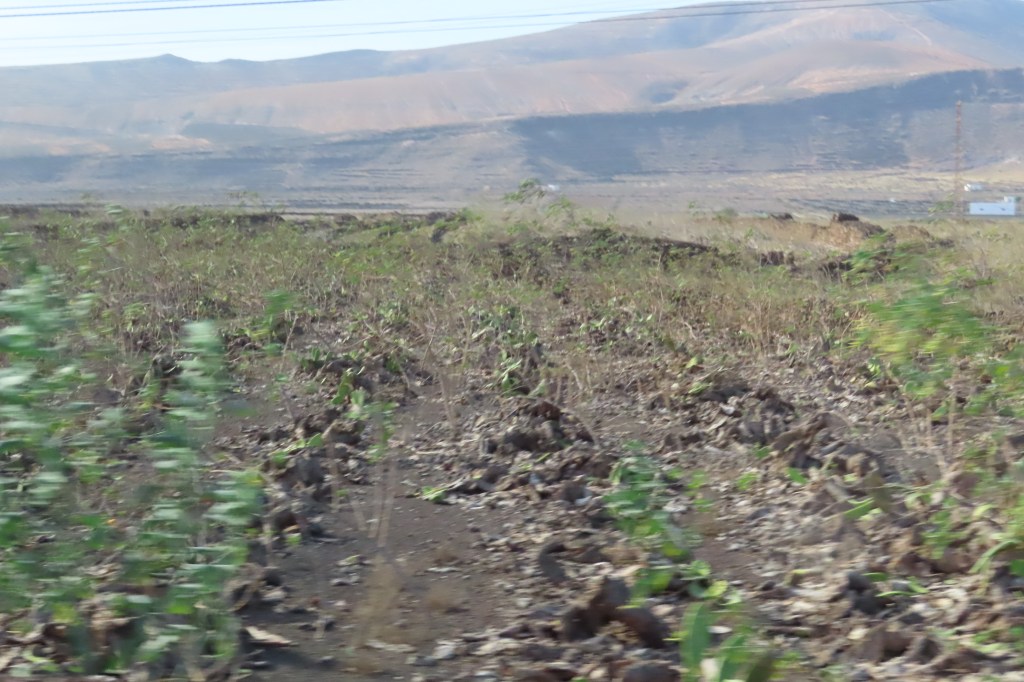 The landscape around the island but for the volcanoes and dark volcanic pebbles in peoples yards, neatly raked.