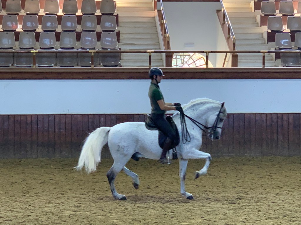 We visited during a practice session so no fancy dress for the dressage. We did meet an instructor who had been a medal winner for Spain in the Olympics. Four to six students are admitted each year, so quite competitive and an honor.